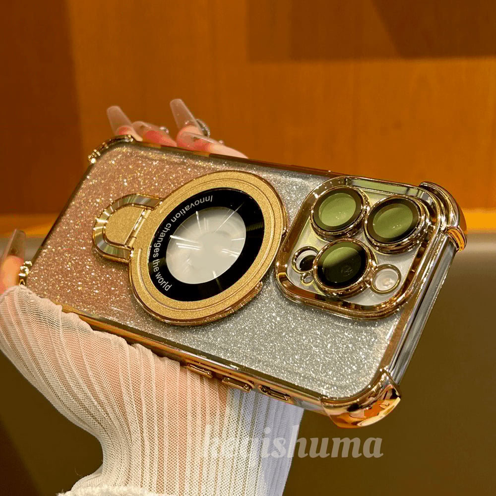 This is a new range that offers magnetic ring and kickstand functionality for the iPhone. When it's open, the built-in aluminum magnetic ring stands stable in portrait or landscape mode, and when it's folded, the back is completely invisible (not preventing the use of Magnetic Charging). It's great to use on your desk or anywhere when you're working or consuming media!You'll free your hands and unlock every happy moment from the perfect hands-free viewing angle,such as FaceTime calls, video meetings, YouTube browsing,and etc.