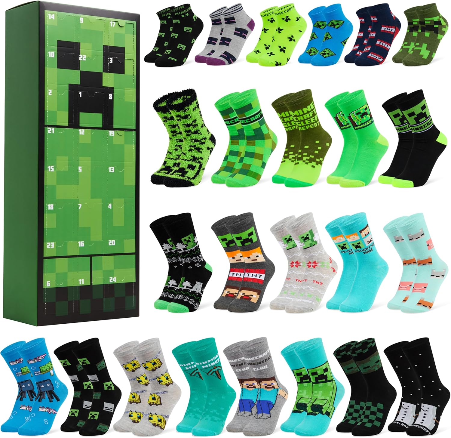 Minecraft 2025 Advent Calendar: 24 Gamer Socks for Kids & Teens 🎮🎄
